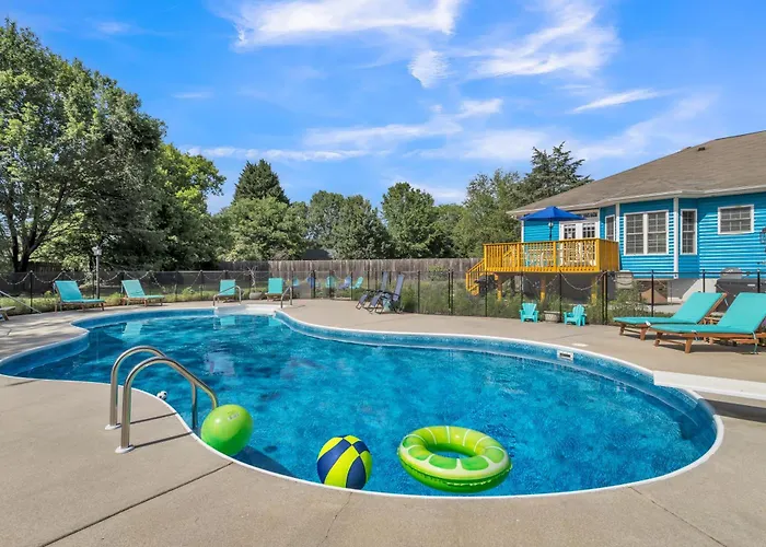 De gesitueerde in Winston-Salem Heated Pool l Indoor Jacuzzi Tubs I Arcade l Outdoor Hot Tub Villa Winston-Salem ligt op korte rijafstand van 10 minuten van Hobby Park en beschikt over een terras met uitzicht op de tuin. Deze 2-badkamer villa beschikt over een bubbelbad en bevindt zich binnen 6 km afstand van Museum of Early Southern Decorative Arts.